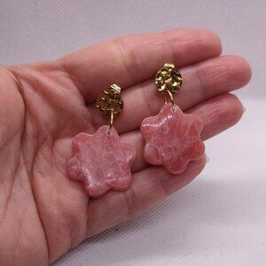 This beautiful bracelet and earrings set is handmade. The design is unique, and there are only three sets, making these pieces exclusive. The beads on the brcelet are natural Angelite, It has a flower-shaped polymer clay spacer, golden hematite beads. The earrings are made with polymer clay.