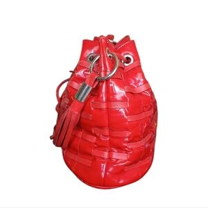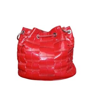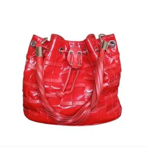 Angelo Carbotti Red Patent Leather Woven Drawstring Shoulder Bag