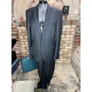 Angelo di Franco suit plaid charcoal white