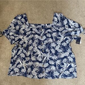 Angels Blue Floral Square Neck Short Sleeve Blouse Size 3X