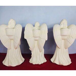 Vintage PARTYLITE Retired Set of 3 Lyrical Angels - Candle Holders. Each angel measures 10'' high x 4.5'' wide x 4.5'' wide and weighs about 1 lb. 9 oz.