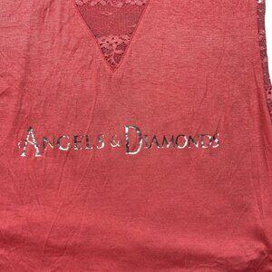 Angels Diamonds Tunic Top Womens S Red Whimsi Goth Indie Sleaze Soft Girl Glam