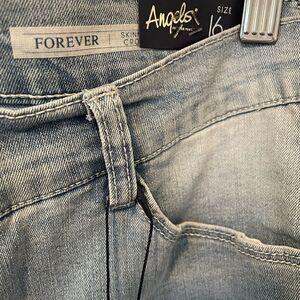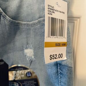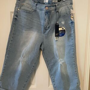 NWT. Excellent condition. Never worn obvious! Really beautiful comfortable jean shorts, longer capri type jean shorts! Tummy control. Really nice! Distressed looking. Nice!