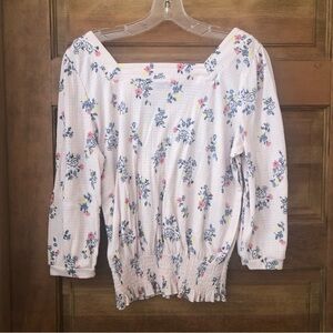 Angels Forever Young Women's Size M Floral Print Shirt Elastic Waist 3/4 Sleeve/ pre own d by myself great condition/ square collar