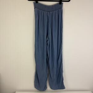 Angels Forever Young Womens Smocked High Rise Light Blue Straight Pants Medium