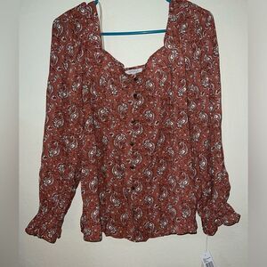 Angels Forever Young Women's Kehlani Square Neck Rayon Long Sleeve Blouse- size