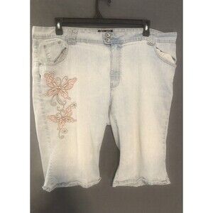 Angels Jeans 24 Capri Length Stretch Denim Embroidered Cuffed Crop Pants Women's