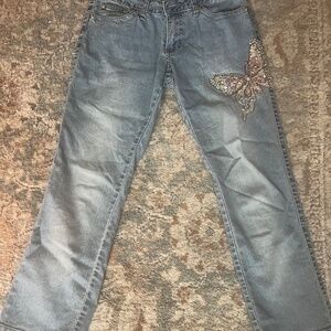 - Angels Jeans Butterfly pink crystal sequin denim hipster pants.
