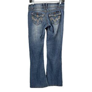 This pair of Angels Junior Size 7 jeans offers a nice, straight fit with comfortable stretch. It features unique flap pockets for added style and functionality.