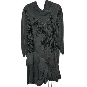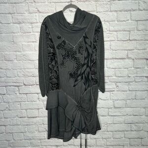 Angels Never Die Gray Graphic Print Long Sleeve Ruched Dress