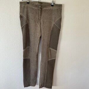 Gorgeous light brown leggings with beautiful details. Comfortable fit, stretchy. Zipper and button fly, no pockets.