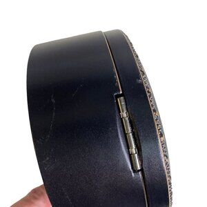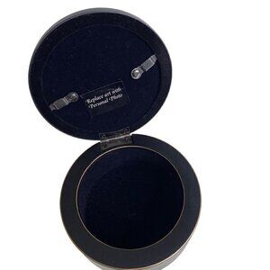 Round box with hinged lid.