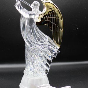 Angels Wings Trumpet Led Light Up Figurine Swirling Glitter Sparkling Snow Globe