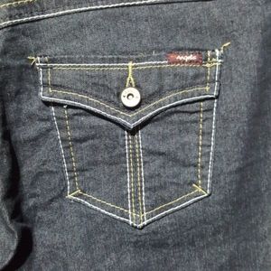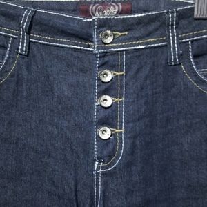 Dark wash denim capris By Angels, four button front closure, two front pockets, two rear pockets, please see all pictures as they are the best description for this item, please feel free to make an offer. 12WI18