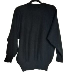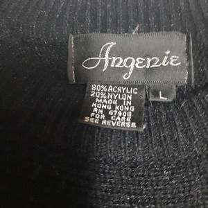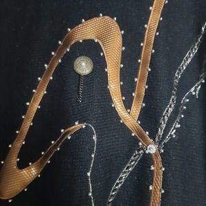 Angenie Women's Black Pullover Knit Graphic Jeweled Sweater L. Acrylic / Nylon Blend is Soft and Comfortable to the Touch. Long Sleeves and a Crew Neck. Perfect for Colder Weather. Hand Wash. Casual or Dress it up. Good Preloved Condition