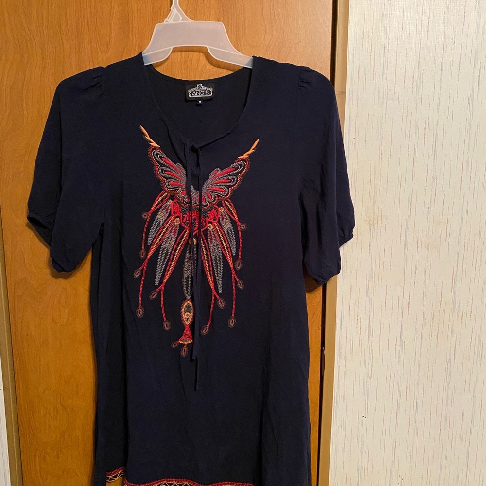 Angie Women's Embellished Boho Shift Dress/Tunic. armpit to armpit-20”, sleeves-3”, length-32” approx. Lovely used