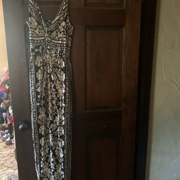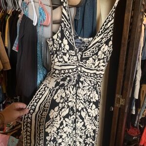 Angie black/white floral jumpsuit with twist front and adorable peek a boo style.