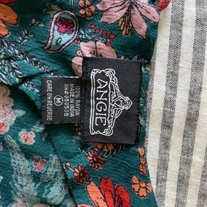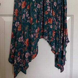 Gently worn, vibrant colors, flutter sleeves, longer on the sides.