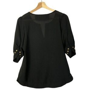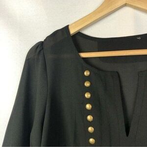 Angie Black V-Neck Chiffon Gold Studded Short Sleeve Blouse M