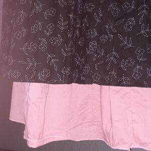 Stylish black midi dress with pink accents. Features a floral pattern. Perfect for casual outings.