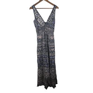 Angie Blue White Babydoll Maxi Dress Womens Sz S Boho Beachy Vacation Cruise