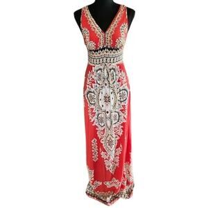 Angie Boho Maxi Dress Red Multicolor Print Sleeveless Size Medium