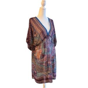 Angie Boho Sheer Paisley Dress Medium Deep V Empire Waist Peasant Sleeve