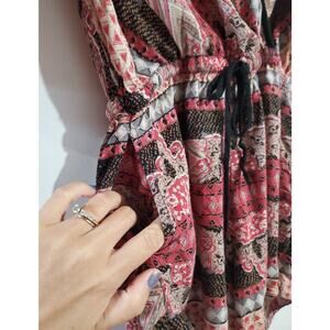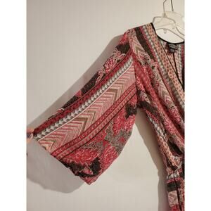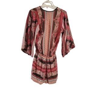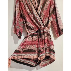 Angie Boho Stripe Kimono Sleeve Wrap Front Romper Womens Size M Pockets Tie