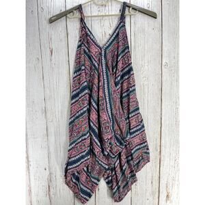 Angie Boho Tank Top Womens Small S Blue Pink Oversized Flowy Sleeveless FLAW