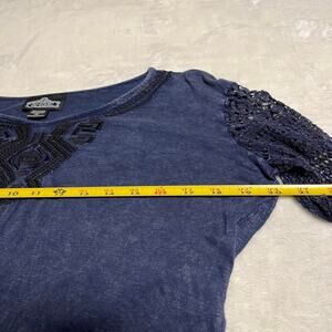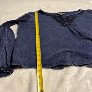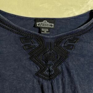 Angie Boho Top Women's M Dark FairyCore Navy Black Crocheted Bell Sleeve Tribal