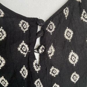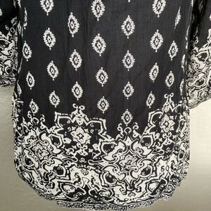 Angie Buckle Womens Size Small Black White Printed 3/4 Sleeve Casual Top. Condition is "Pre-owned". No flaws. Size small