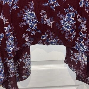 Angie Burgundy and Blue Floral Kimono Open Front Short Sleeves FITS UP TO XL