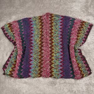 Angie Colorful Prismatic Knit Shawl Poncho One Size Pink Purple Green Boho Indie