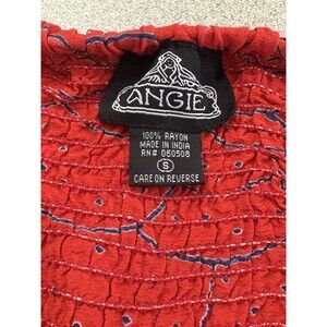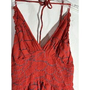 Angie Designer Women’s Small Red Blue Halter Top Dress Smocked Waist Spaghetti