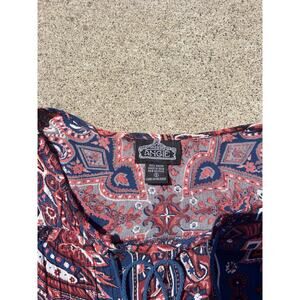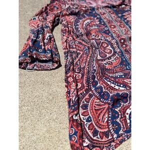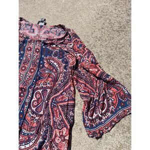 Angie Dress Women Size Small Navy Maroon Paisley Print Flare Sleeve Tassels Mini