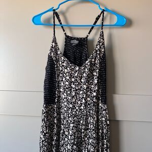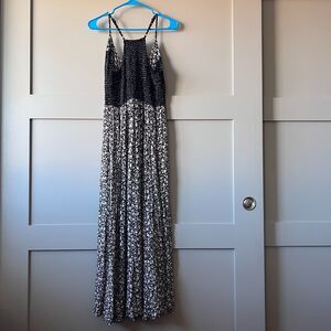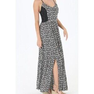 Angie Dress Womens Medium Black Floral Maxi Boho Sleeveless Smocked Rayon Summer