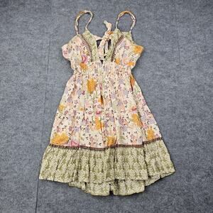 Angie Dress Womens Medium Sundress Floral Boho Mini Ruffle Hem Retro Festival