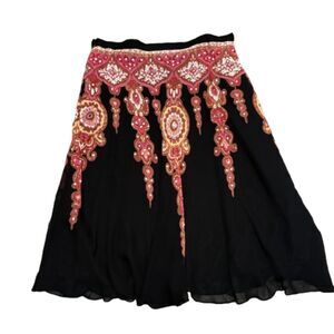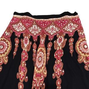 Angie Embellished Bohemian Hippie Flare Skirt Black Red Pink Rayon Size Small