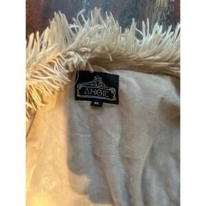 Angie Faux Fur Beige Shag Long Jacket with Front Clasp, Size XL
