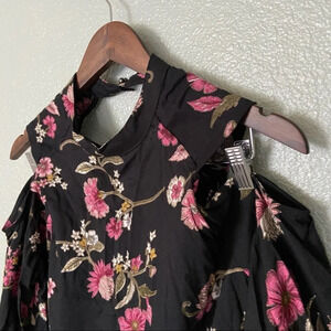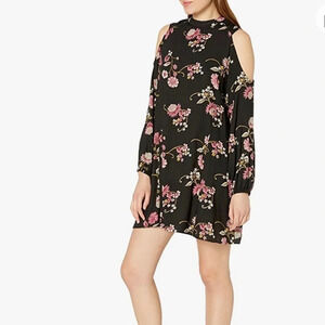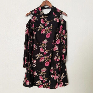 Angie Floral Cold Shoulder Mock Neck Mini Dress Large Boho Chic NEW