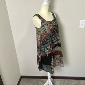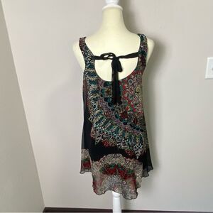 Angie Floral Paisley Boho Artsy Semi Sheer Mini Dress Women's Size Small