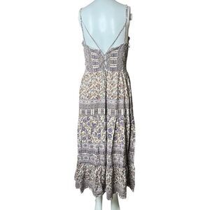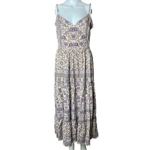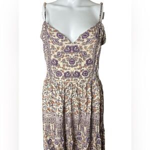 Embrace elegance with this floral print midi dress. Featuring a beautiful blend of purple and cream, it's perfect for any occasion.