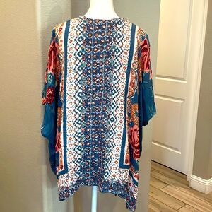 In good condition 100% Rayon Hand Wash 34” chest pit to pit 26” length Fits loose and flowy Perfect for fall