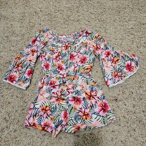 This Angie Girls Size Small Floral Romper is a colorful one-piece outfit perfect for various occasions such as travel, parties, casual outings, and christenings. This long sleeve romper features a floral pattern in a blended fabric, making it suitable for all seasons. With a vibrant multicolor design and a comfortable fit, this romper is a stylish and versatile option for young girls looking for a trendy outfit.