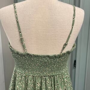 Angie Green Floral Ditsy Dress Sun Dress Slip Size Medium Smocked Back Midi