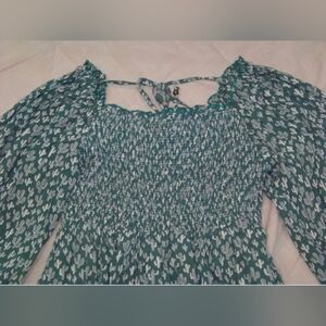 Angie Green🌵 and White Smocked Ruffled Blouse Cactus print