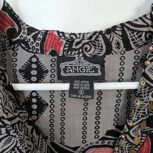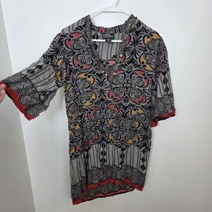 Angie Grey Black Sequin Beaded Bohemian Gypsy Indian Tunic Shirt Size Small