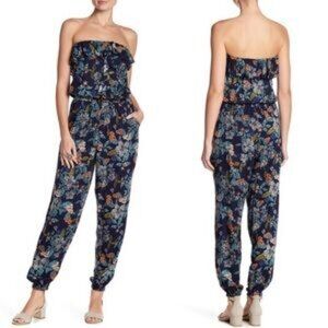 Angie Jumpsuit Womens Size Small Colorful Floral Ruffles Strapless Summertime
