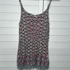 Stylish jumpsuit with intricate patterns. Features a mix of colors for a vibrant look. Perfect for casual outings.