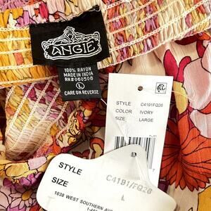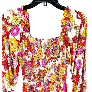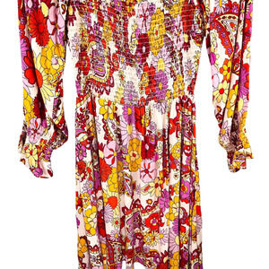Angie NWT Juniors Floral Print Long Sleeve Smocked Bodice Fit-And-Flare Dress L